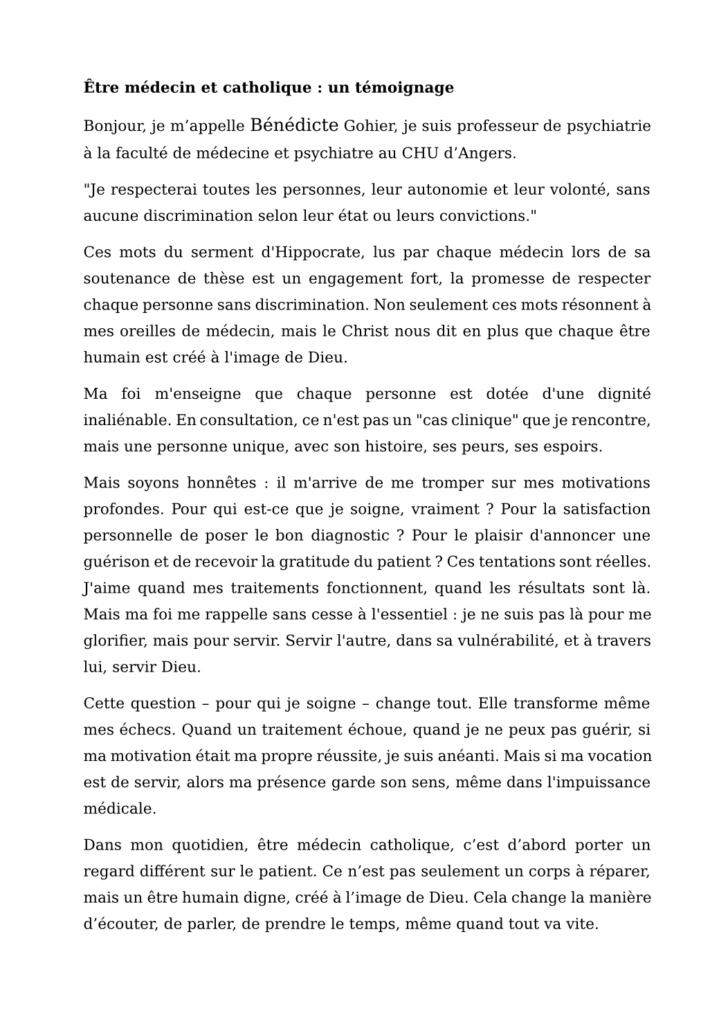 Accueil > A la Une > Témoignage d’un médecin catholique lors du dimanche de la santé ⚕️🏥🩺