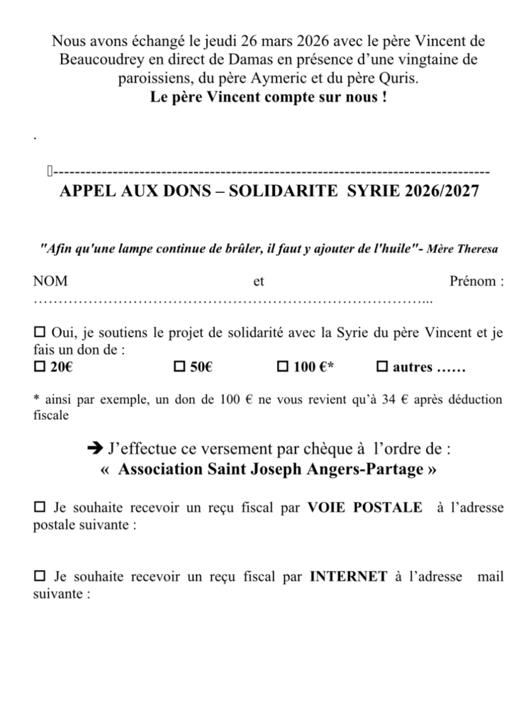 nous avons déjà collecté 2 550 euros et nous continuons notre opération de solidarité avec la syrie
