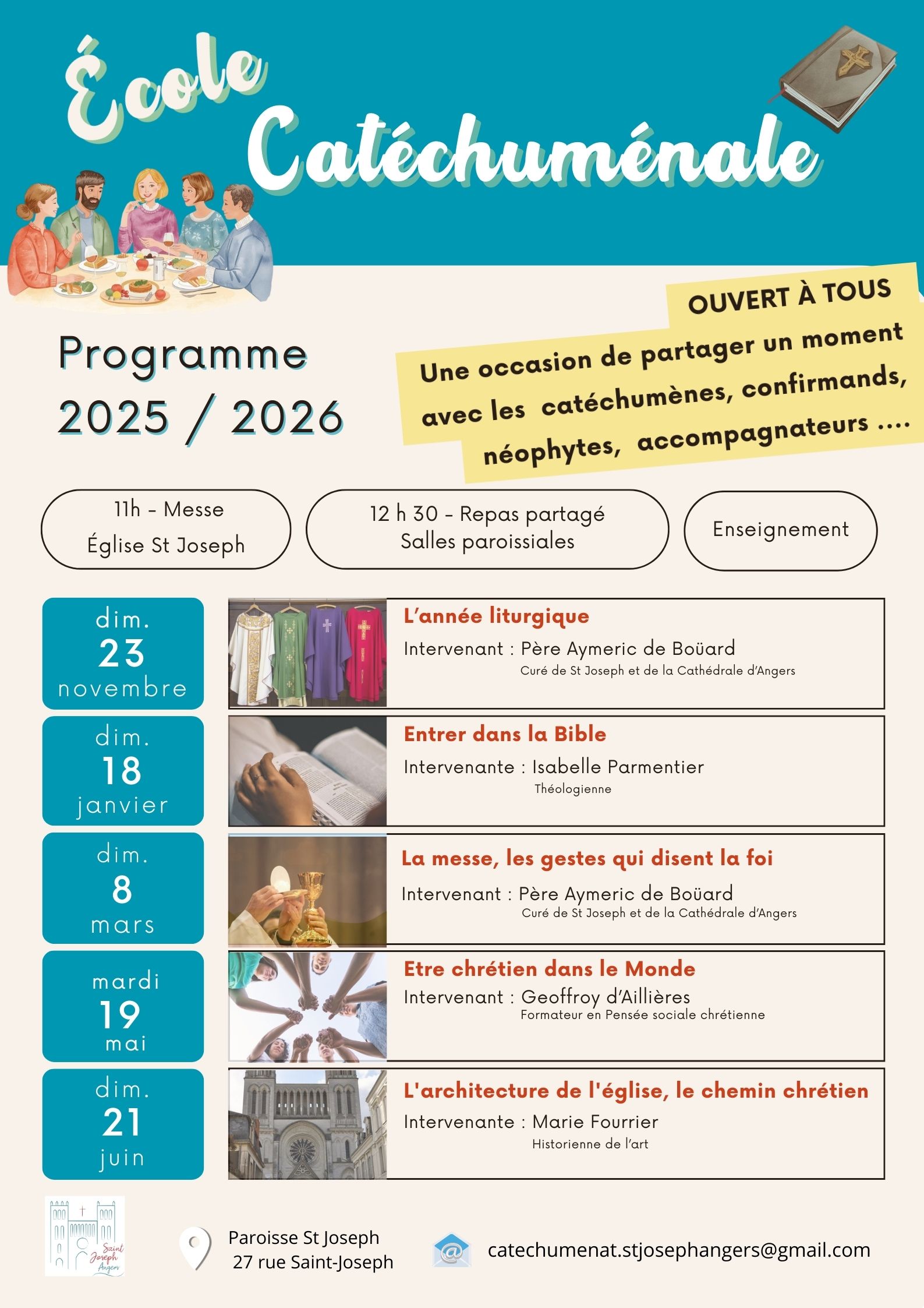 Organisé pour les catéchumènes, néophytes, confirmands, accompagnateurs et leurs proches… cet évènement est ouvert à tous ceux qui veulent passer un moment fraternel et en savoir un peu plus sur un sujet. Vous êtes les bienvenus !