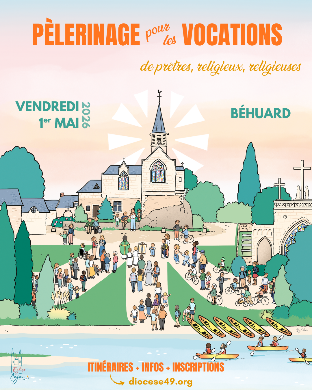 À l’invitation de notre évêque, Monseigneur Delmas, venons vivre une journée de prière pour les vocations des prêtres et des religieux et religieuses pour notre diocèse le vendredi 1er mai 2026 à Béhuard.